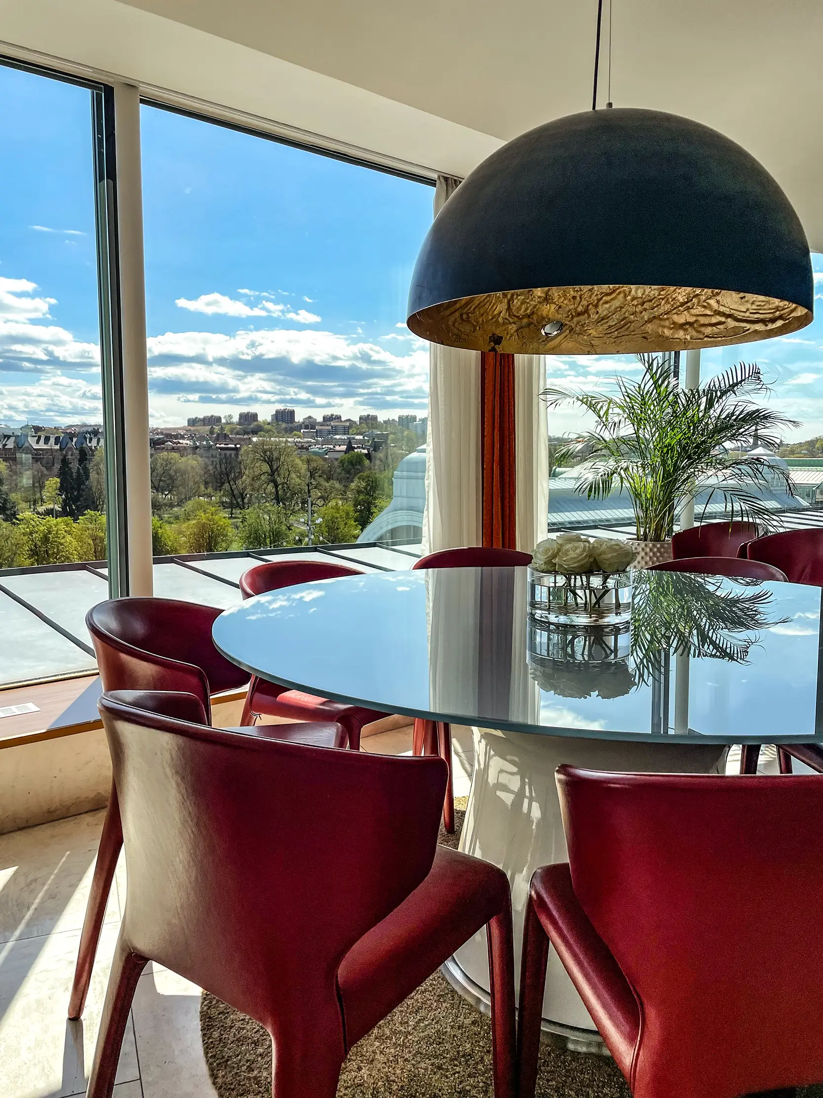 I Avalons numera välkända Penthouse – en rymlig och elegant takvåning på hela 85 kvadratmeter, består vår inredning av ett smakfullt urval av modern design med ett skandinaviskt uttryck. Lampan är ett samlingsföremål, ritad av Enzo Catellani från Italien som är ovanför matbordet. I sällskapsdelen finns gott om plats att umgås och här finns också en inbjudande soffgrupp med utsikt över hela kungstorget.